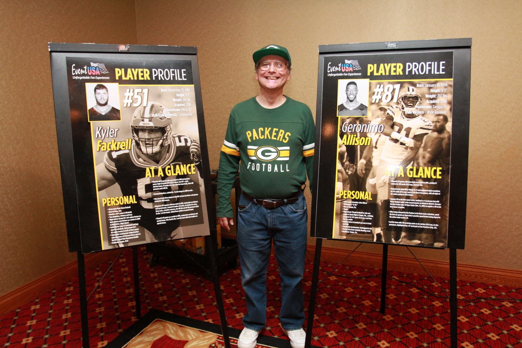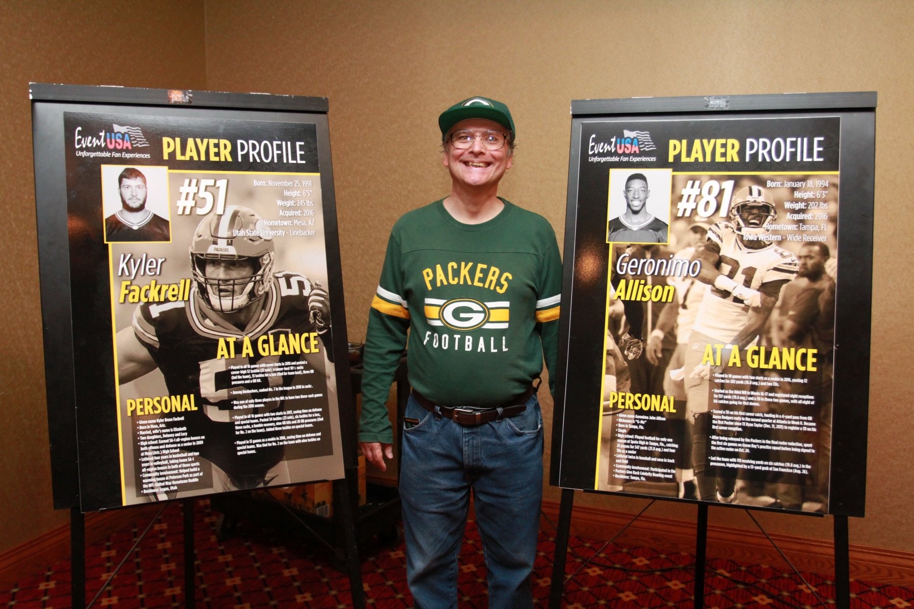 "My accommodations at the Best Western Midway were excellent. I was picked up at the airport and returned promptly. No problems at all. Your representative at the hotel on game day was very pleasant and helpful. The tailgate party was super, great food, great drinks and lots of fun. Obviously, Lambeau Field and the game itself was great. I will continue to use Event USA in the future, and I will definitely tell anyone who I come across to give you a call. One last thing, the hospitality I experienced in Green Bay was incredible. I have traveled to many places, and I don’t think there are more friendly people than the people of Green Bay. Thank you again and see you next year!"